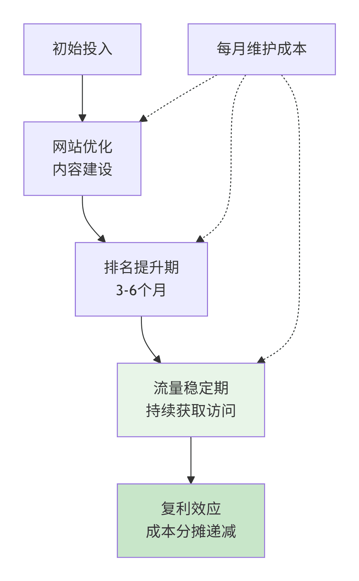 - SEO成本模式:長(zhǎng)期投資型